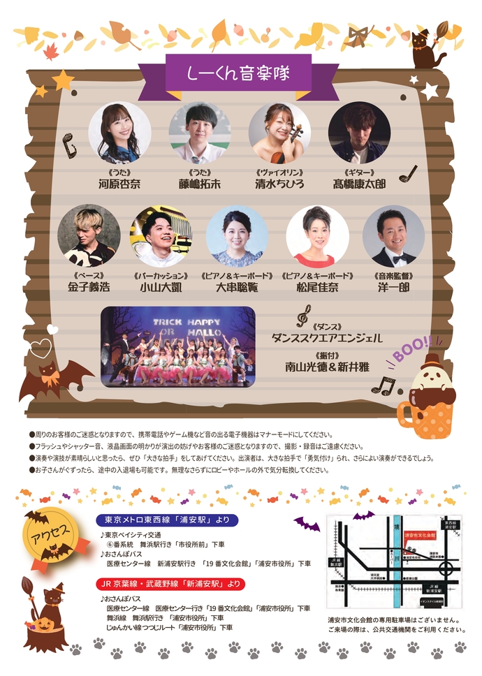 定番曲や、オリジナルソング、手遊び唄など、浦安市出身アーティストを中心に構成した演奏家、ダンサーがオール生演奏でパフォーマンスします!